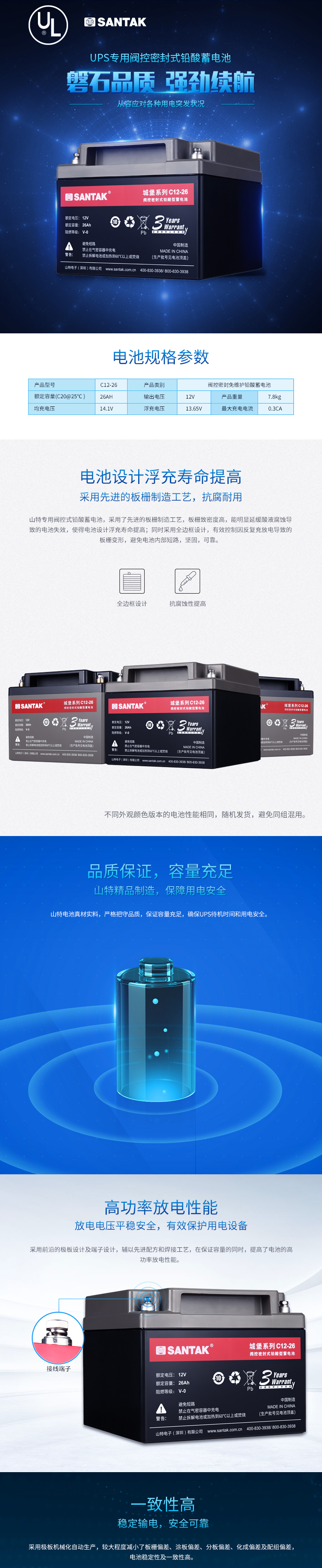 山特蓄电池C12-26 12V26AH山特原厂蓄电池