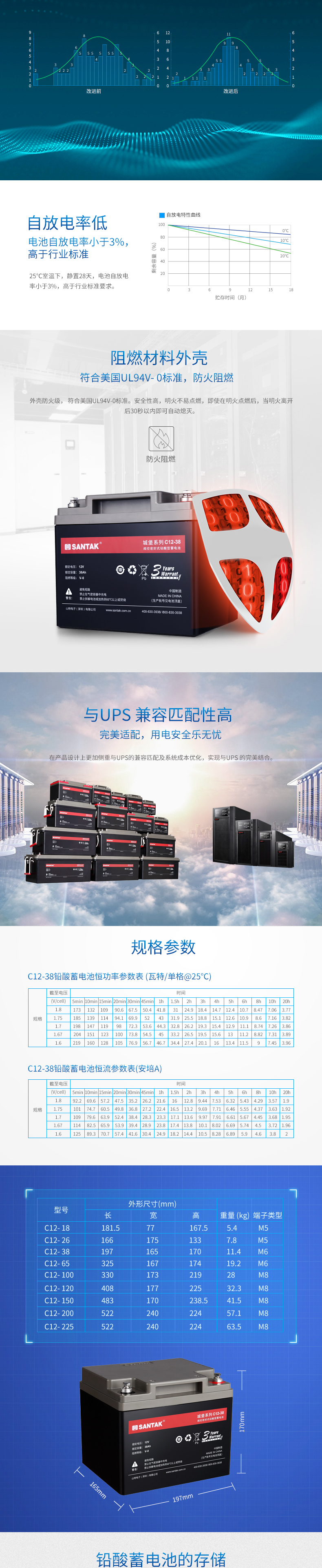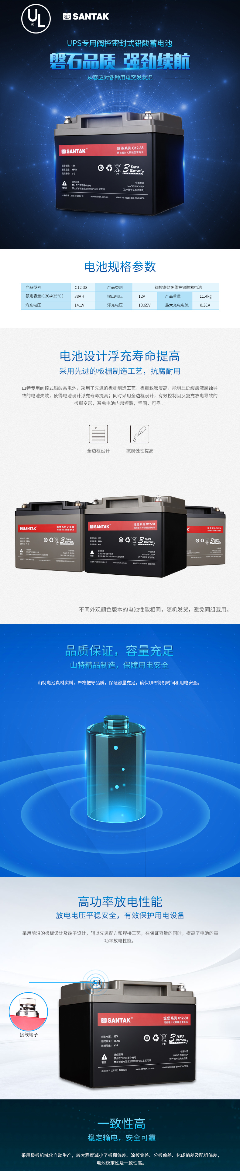 山特蓄电池C12-38 12V38AH山特原厂蓄电池
