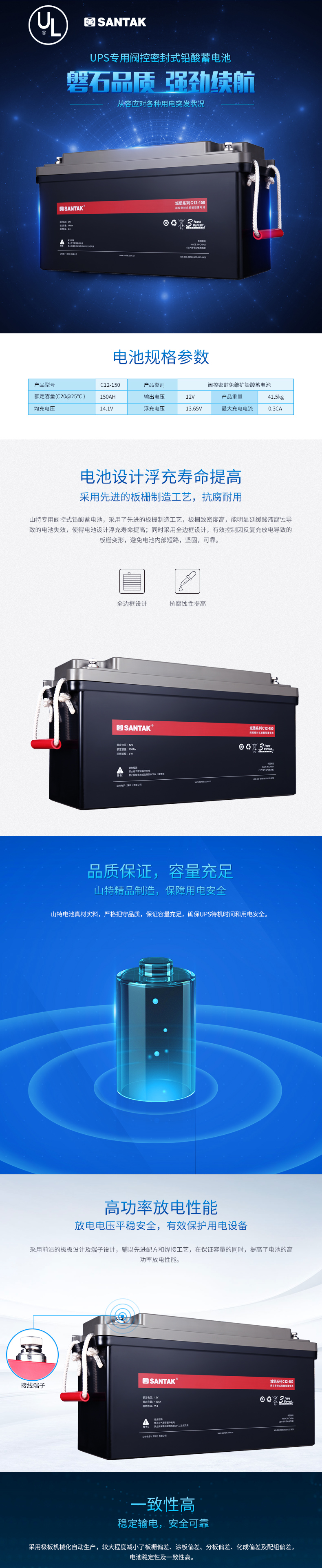 山特蓄电池C12-150 12V150AH山特原厂蓄电池